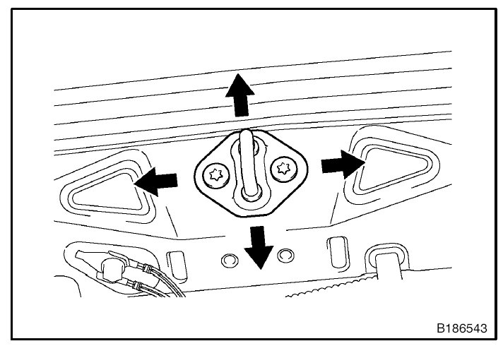 6. Using a "TORX" socket wrench (T40), tighten the striker mounting screws after the adjustment.