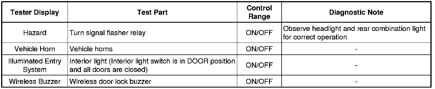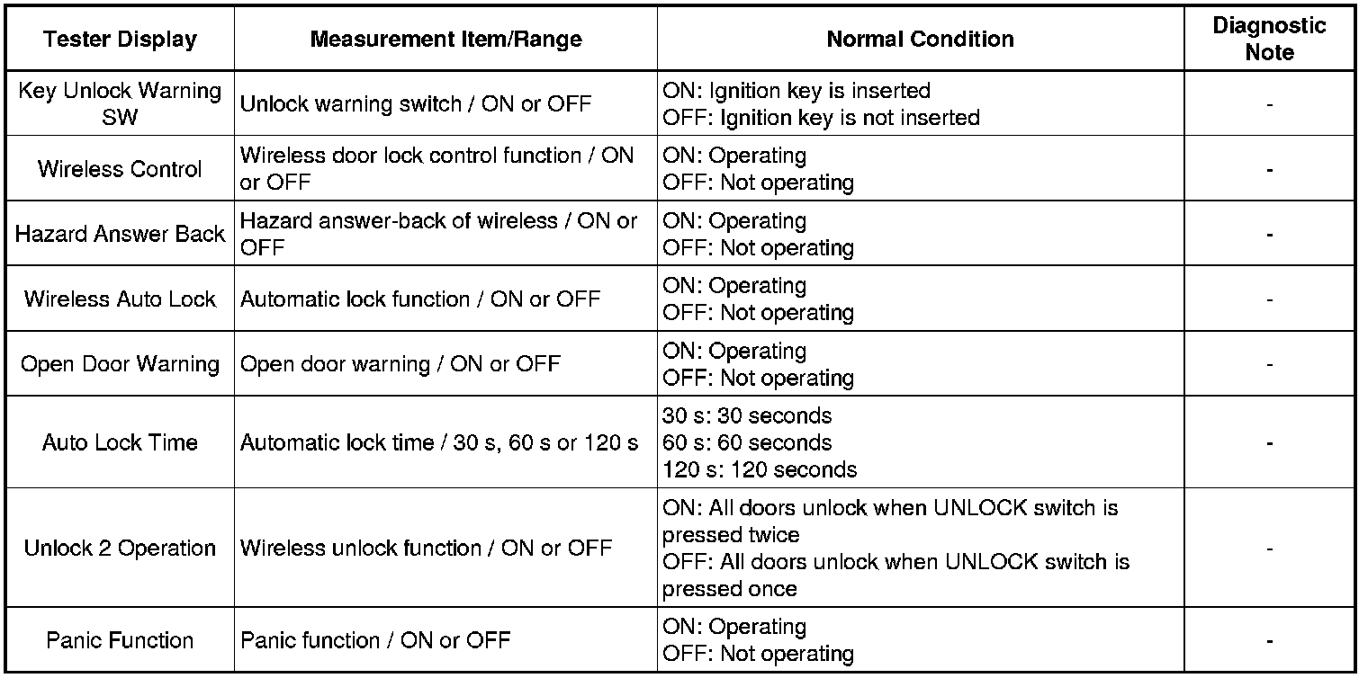DOOR LOCK: WIRELESS DOOR LOCK CONTROL SYSTEM: DATA LIST / ACTIVE TEST