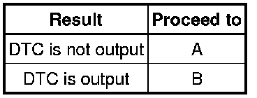 (a) Check the results obtained in step 4. Then find the output DTC in the DTC chart. Look at the Trouble Area column for a list of potentially malfunctioning circuits and/or parts.