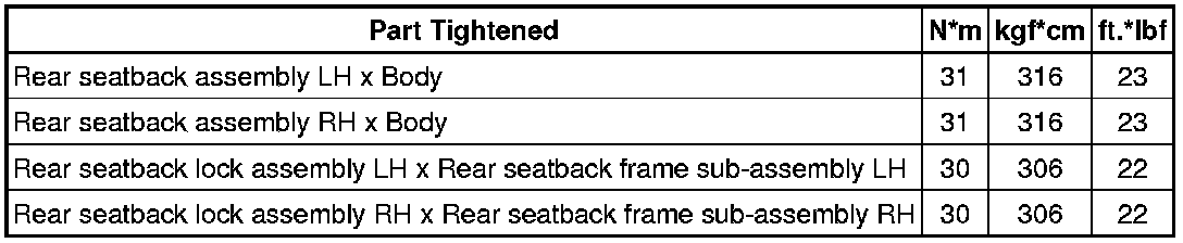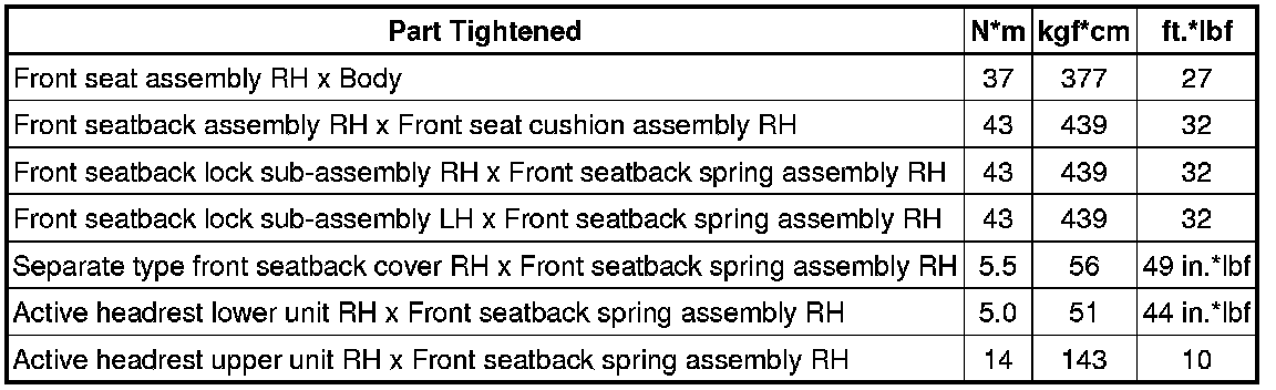 SPECIFICATIONS: SEAT: TORQUE SPECIFICATIONS