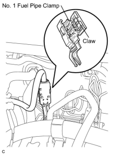 (5) Engage the lock claw and install the No. 1 fuel pipe clamp.