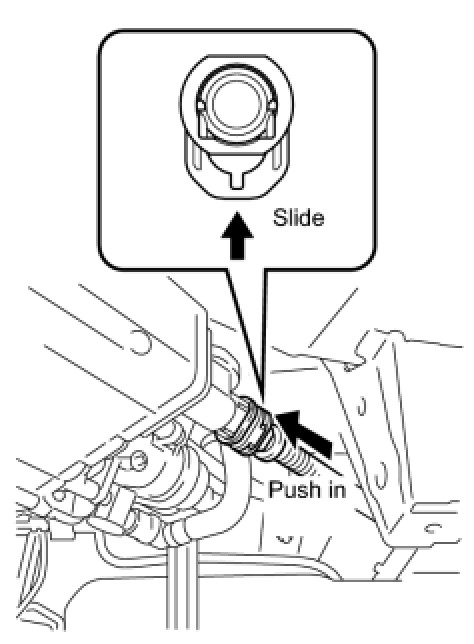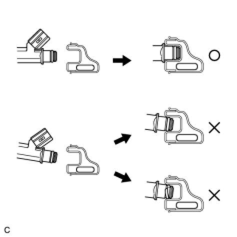 (2) Match the axis of the connector with the axis of the pipe, and push the pipe into the connector until the connector makes a "click" sound. If the pipe is difficult to push into the connector, apply a small amount of clean engine oil to the tip of the pipe.