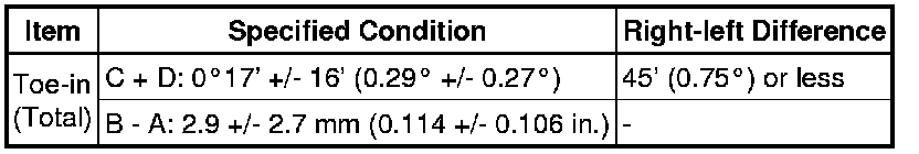 * If the toe-in is not within the specified range, inspect the suspension parts and replace them if necessary.