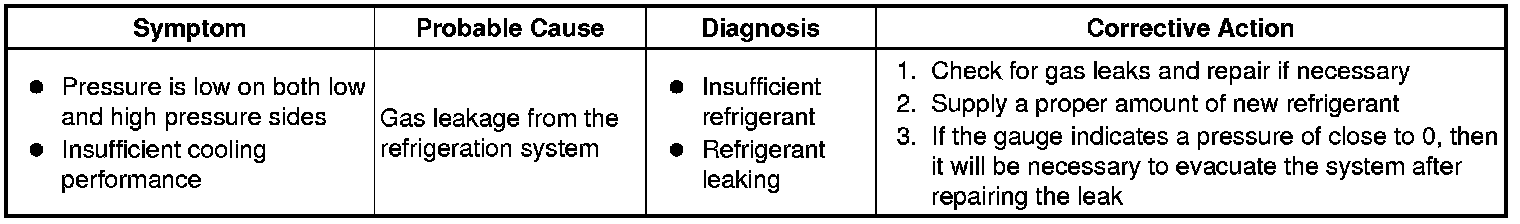 (6) Refrigerant is overcharged or cooling effectiveness of the condenser is insufficient.
