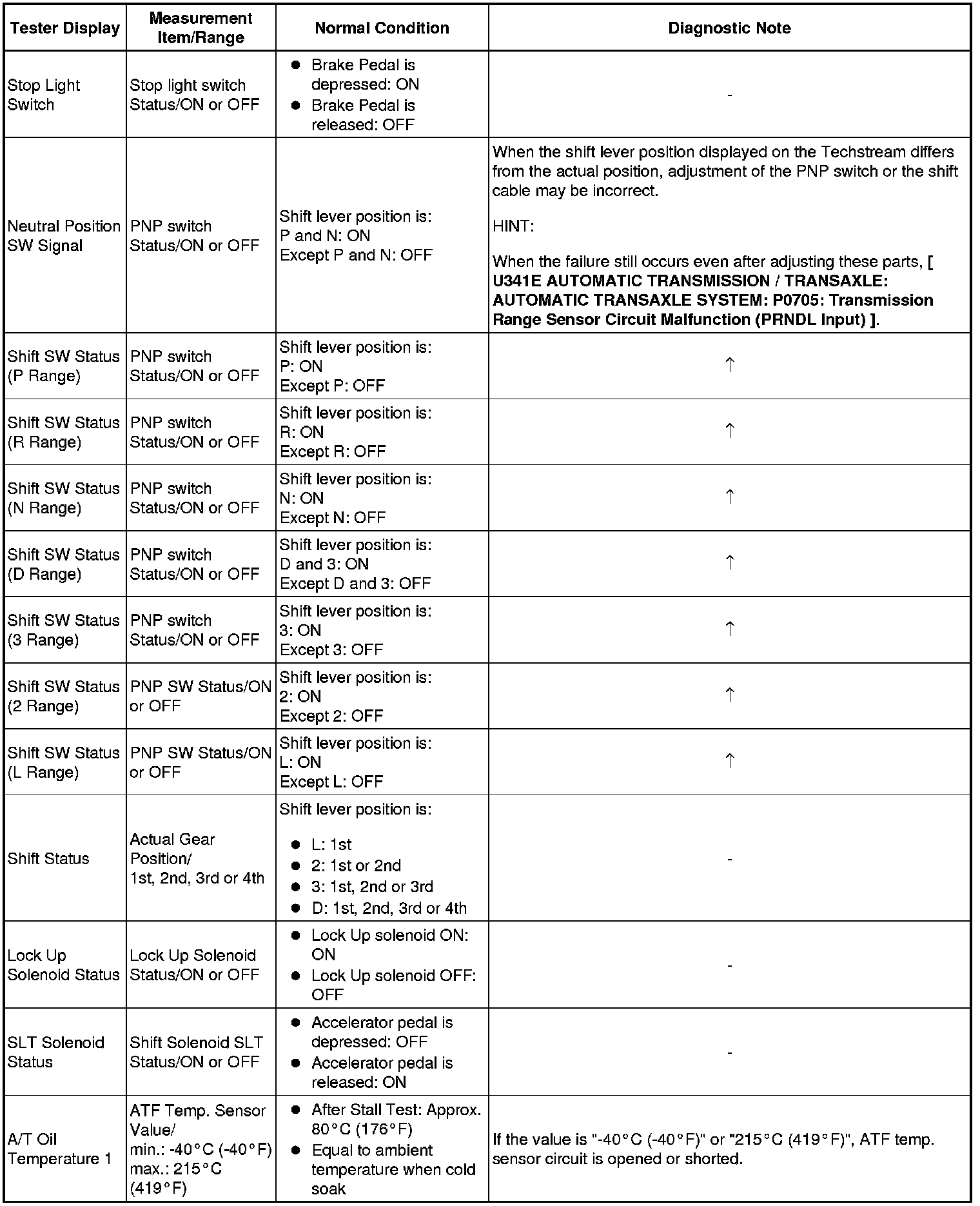 U341E AUTOMATIC TRANSMISSION / TRANSAXLE: AUTOMATIC TRANSAXLE SYSTEM: DATA LIST / ACTIVE TEST