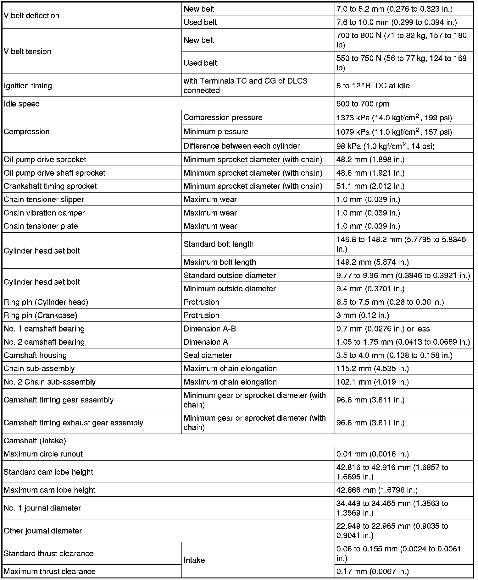 SPECIFICATIONS: 2ZR-FE ENGINE MECHANICAL: SERVICE DATA