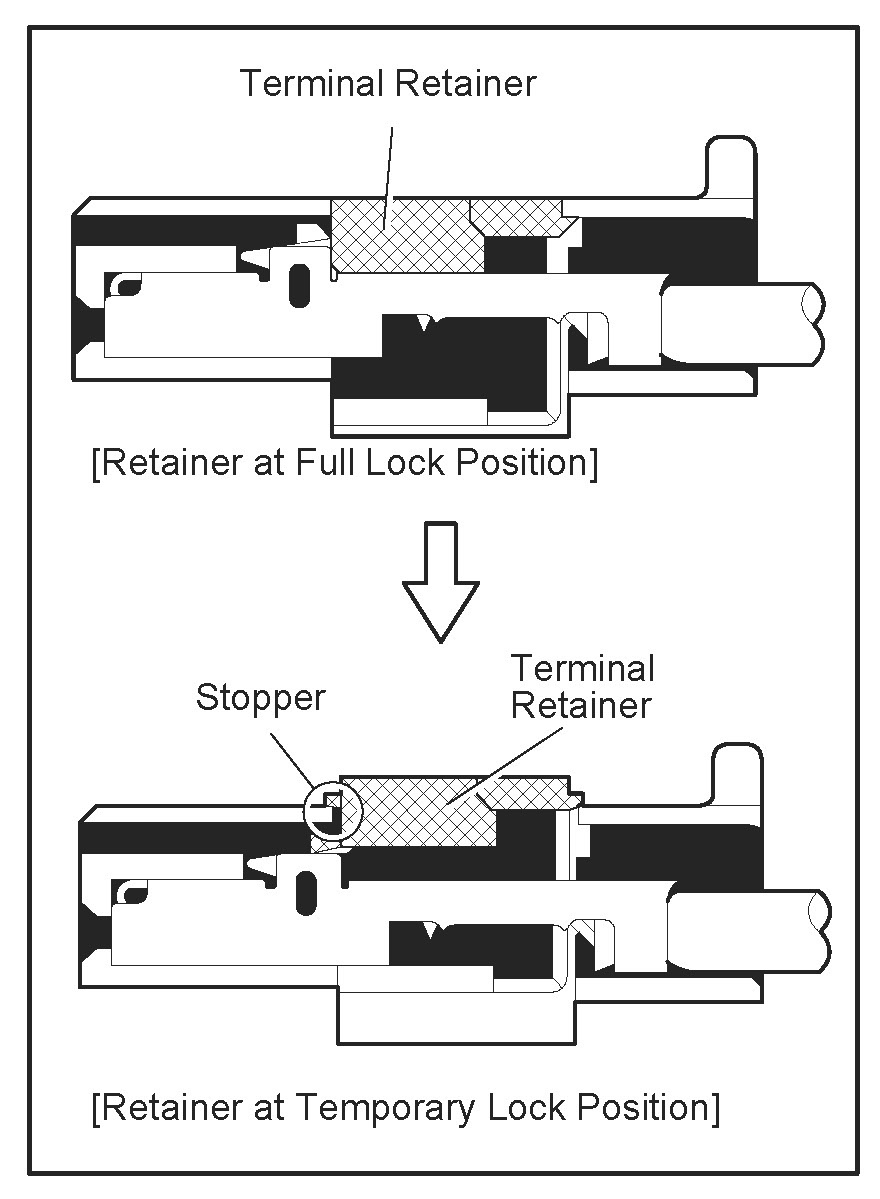 Push the terminal retainer down to the temporary lock position.