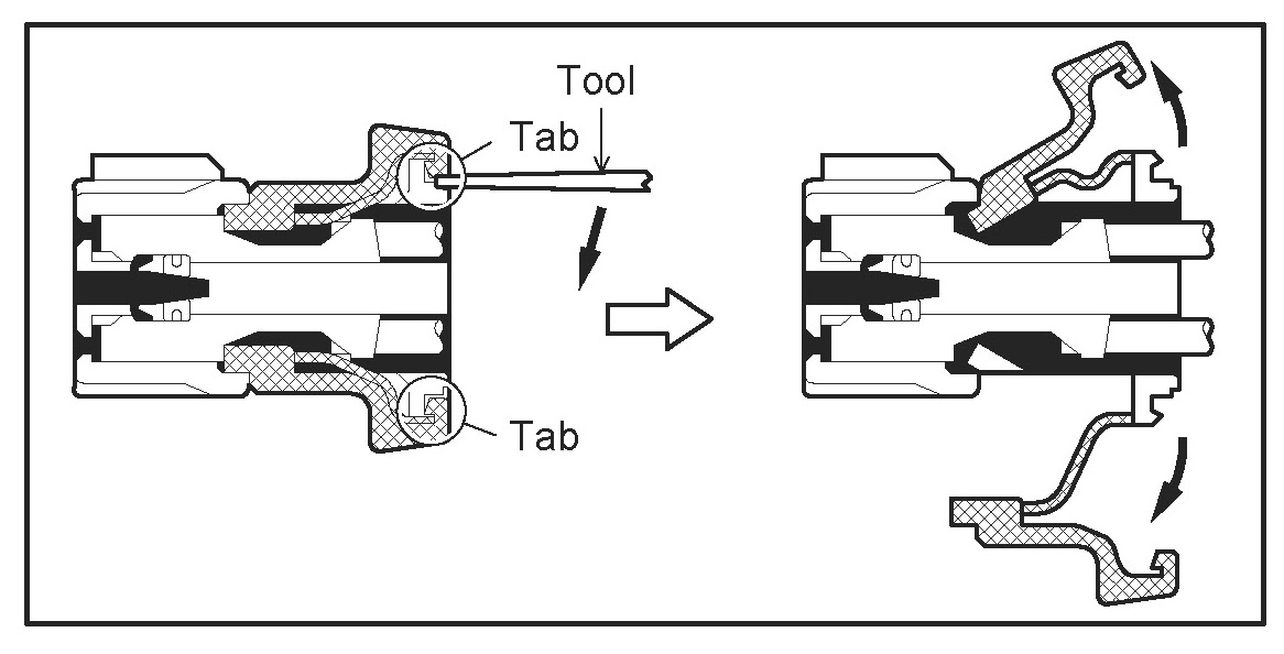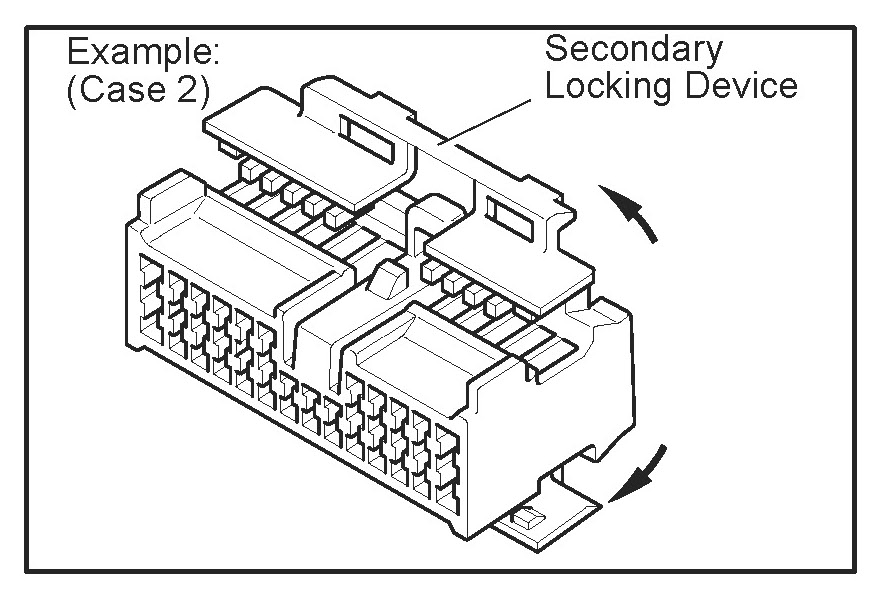 a. Locking device must be disengaged before the terminal locking clip can be released and the terminal removed from the connector.