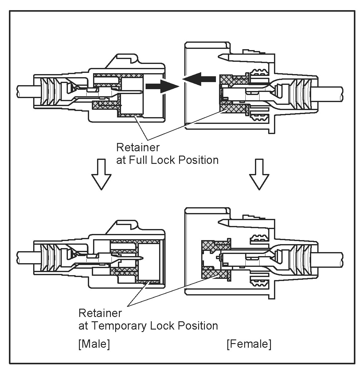 NOTICE: Do not remove the terminal retainer from connector body.