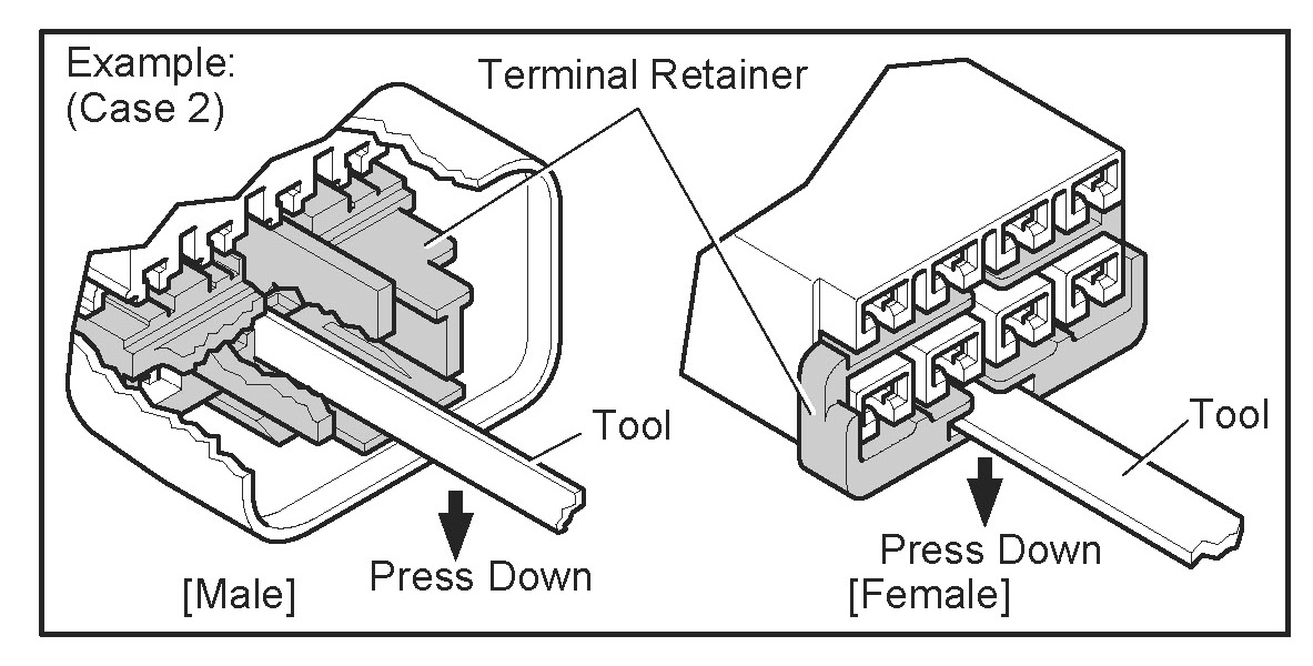 Type which cannot be pulled as far as Power Lock insert the tool straight into the access hole of terminal retainer as shown.