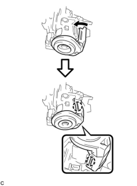 (c) Push the transponder key amplifier, and engage the 2 claws to install the transponder key amplifier to the steering column upper bracket.