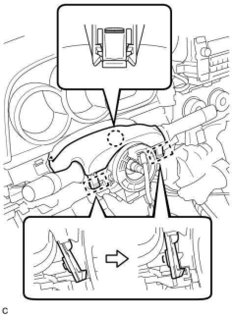 (c) Connect the connectors and engage the wire harness clamps to the steering post assembly.