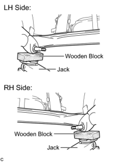 (a) Support the rear axle beam assembly using 2 jacks and 2 wooden blocks.