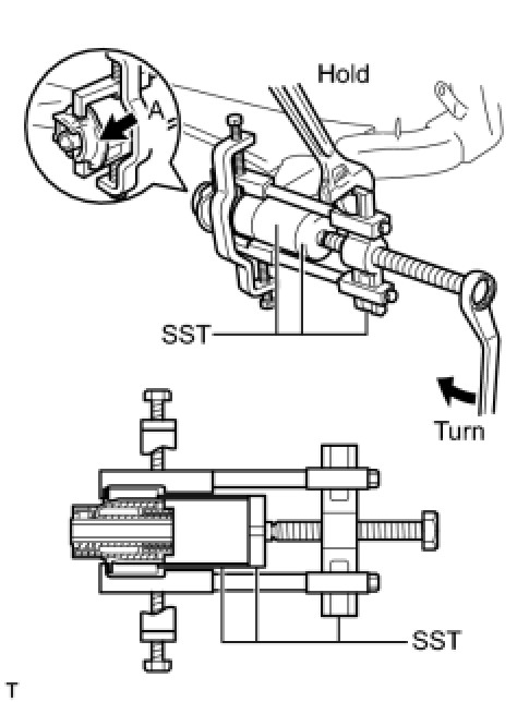 (c) Using SST, install the rear axle carrier bushing LH to the rear axle beam assembly.