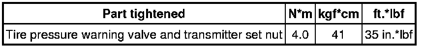 SPECIFICATIONS: TIRE PRESSURE MONITORING: TORQUE SPECIFICATIONS