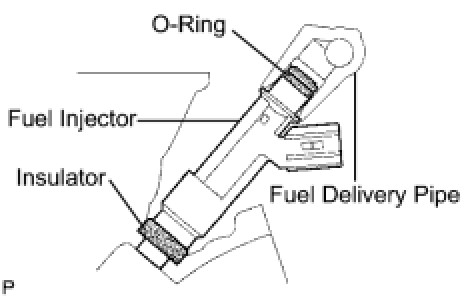 (b) Install the injector into the delivery pipe and cylinder head as shown in the illustration. Apply grease or gasoline to the contact surfaces of the injector before installing the injector.