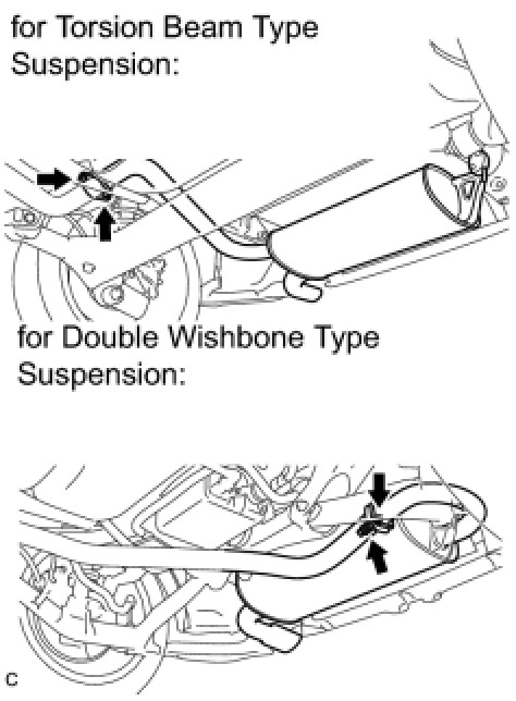 (d) Connect the tail exhaust pipe assembly to the 3 exhaust pipe supports. (for Torsion beam type suspension)