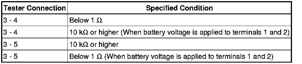 (c) Connect a positive (+) lead from the battery to terminal 2 and a negative (-) lead from the battery to terminal 1, and check that the motor operates.