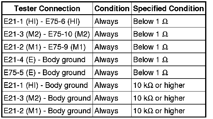(e) Measure the resistance according to the value(s) in the table below.