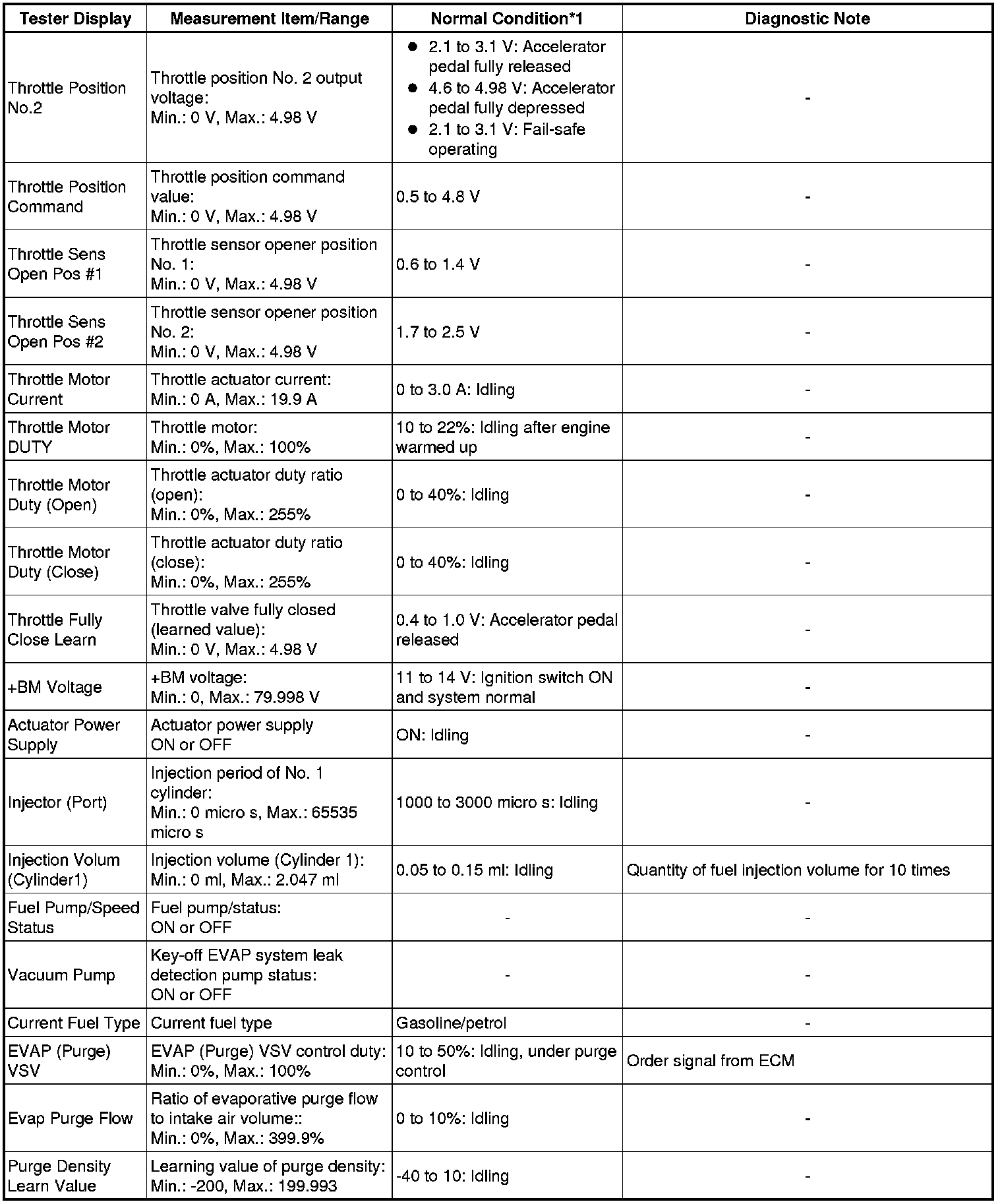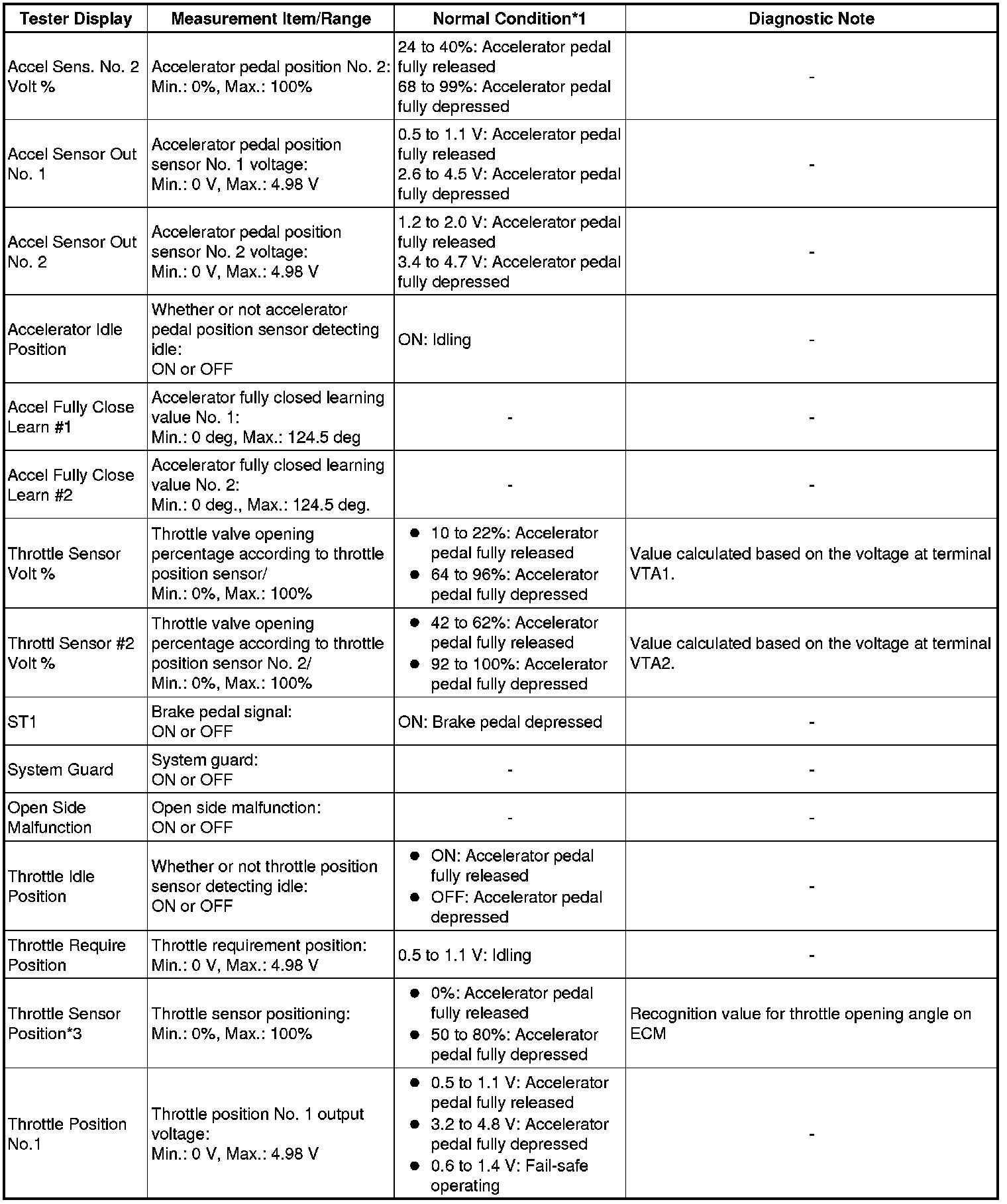 * *3: Excluding throttle valve operating percentage due to Idle Speed Control (ISC).