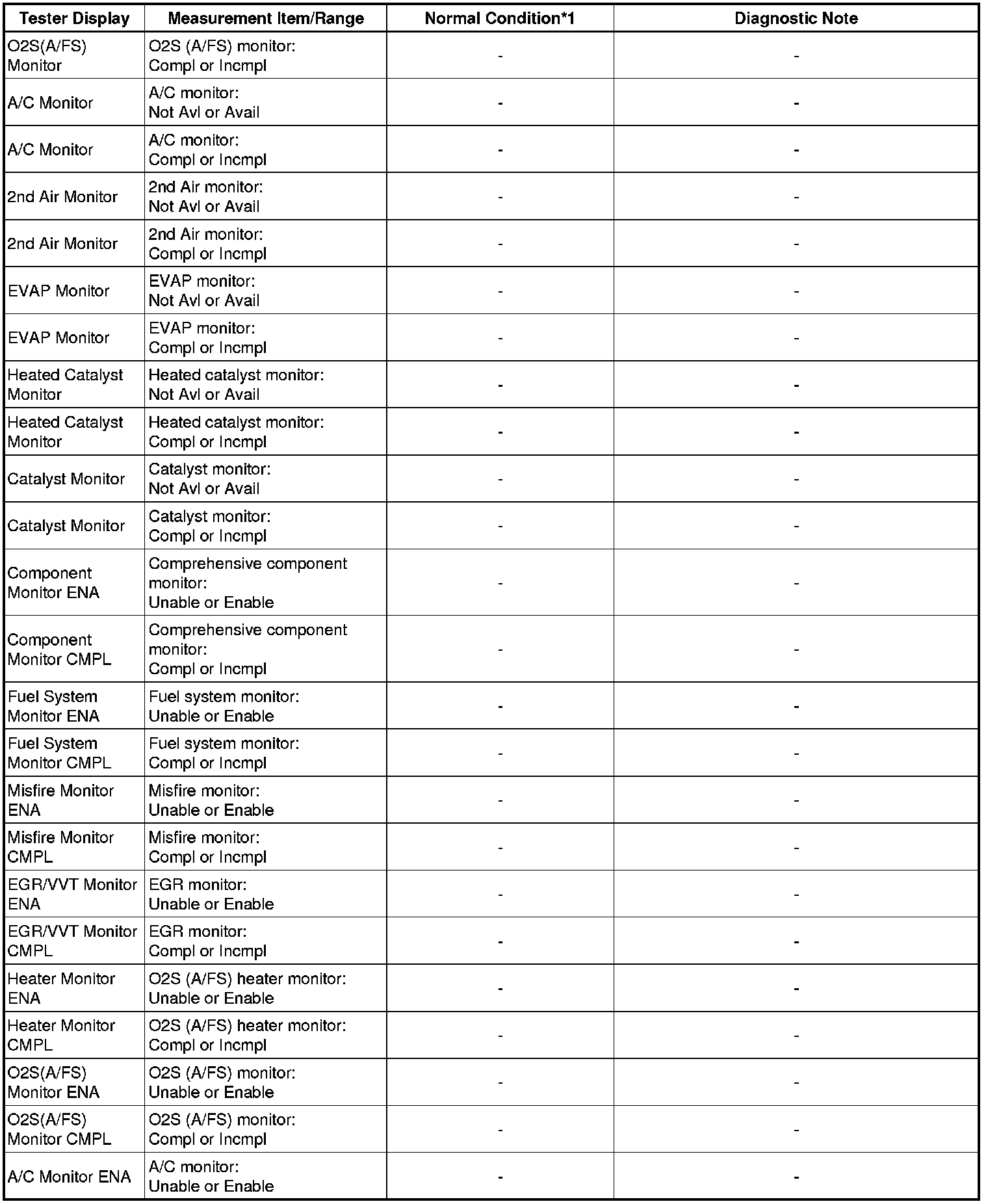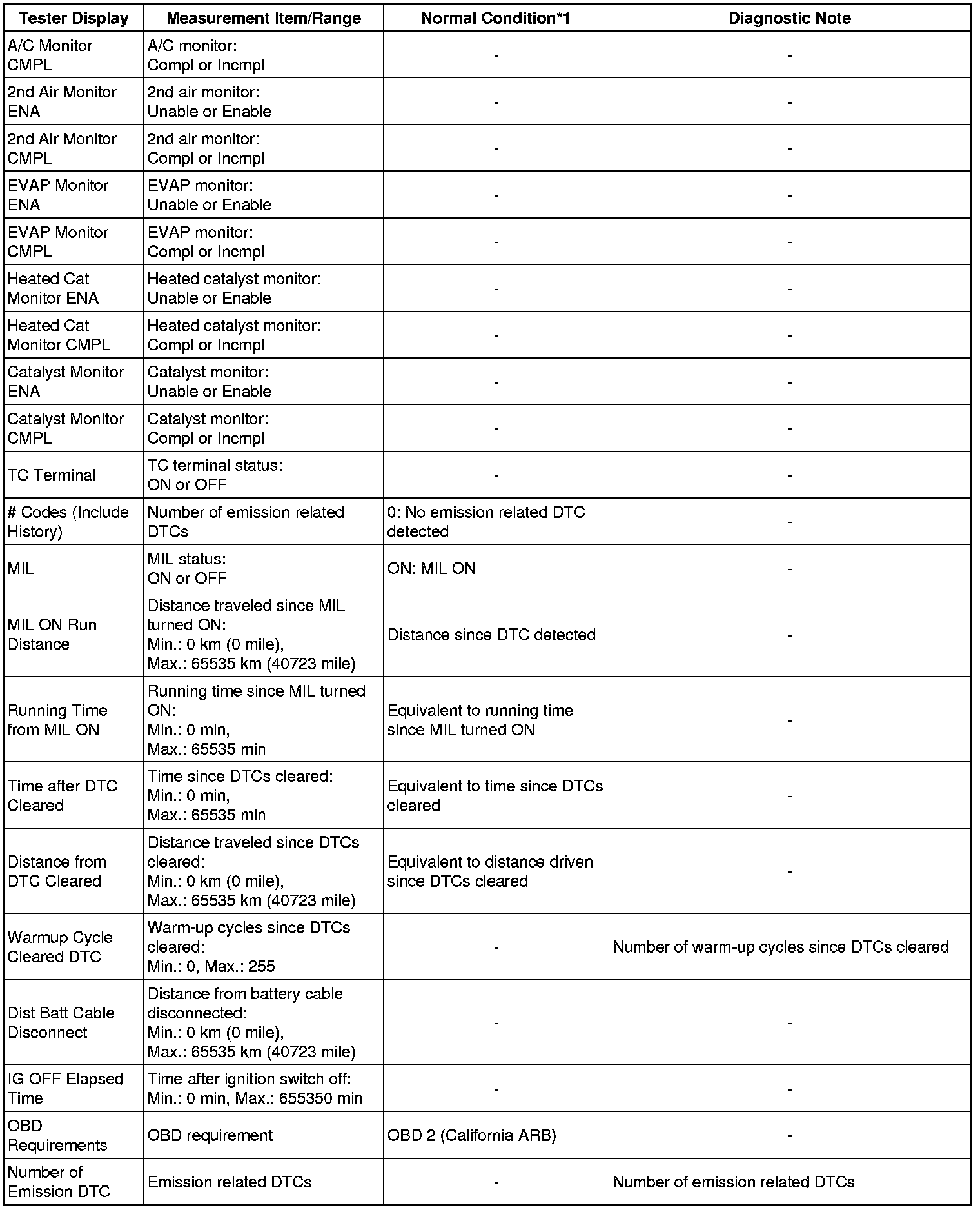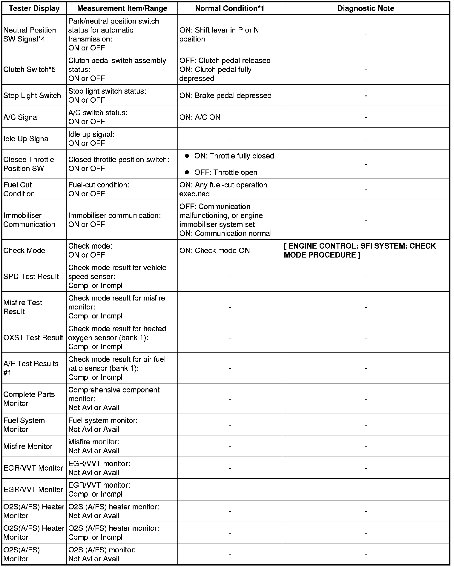 * *1: If no idling conditions are specified, the shift lever should be in N (neutral) or P, and the A/C switch and all accessory switches should be OFF.