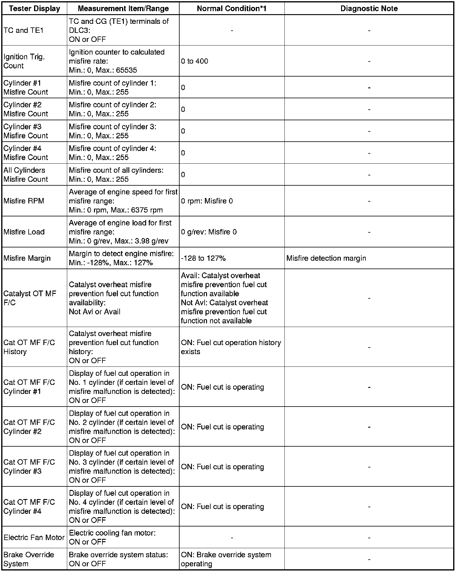 * If the display of the Data List item Catalyst OT MF F/C item is Not Avl, perform this Active Test with the vehicle stopped and the engine idling.