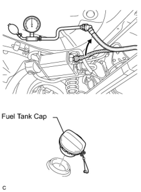 (e) Remove the fuel tank cap, and check that the pressure drops.