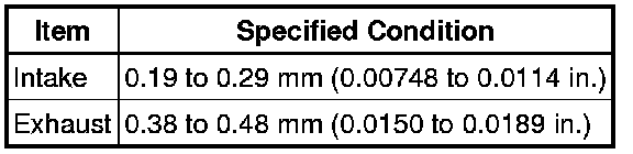 Standard Valve Clearance (Cold):