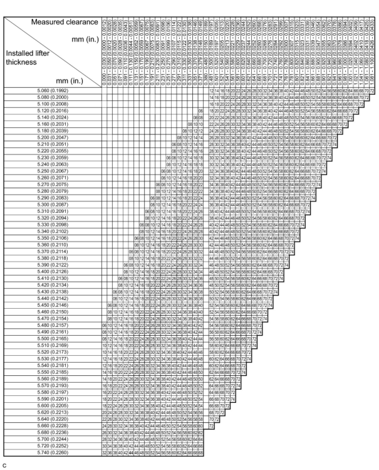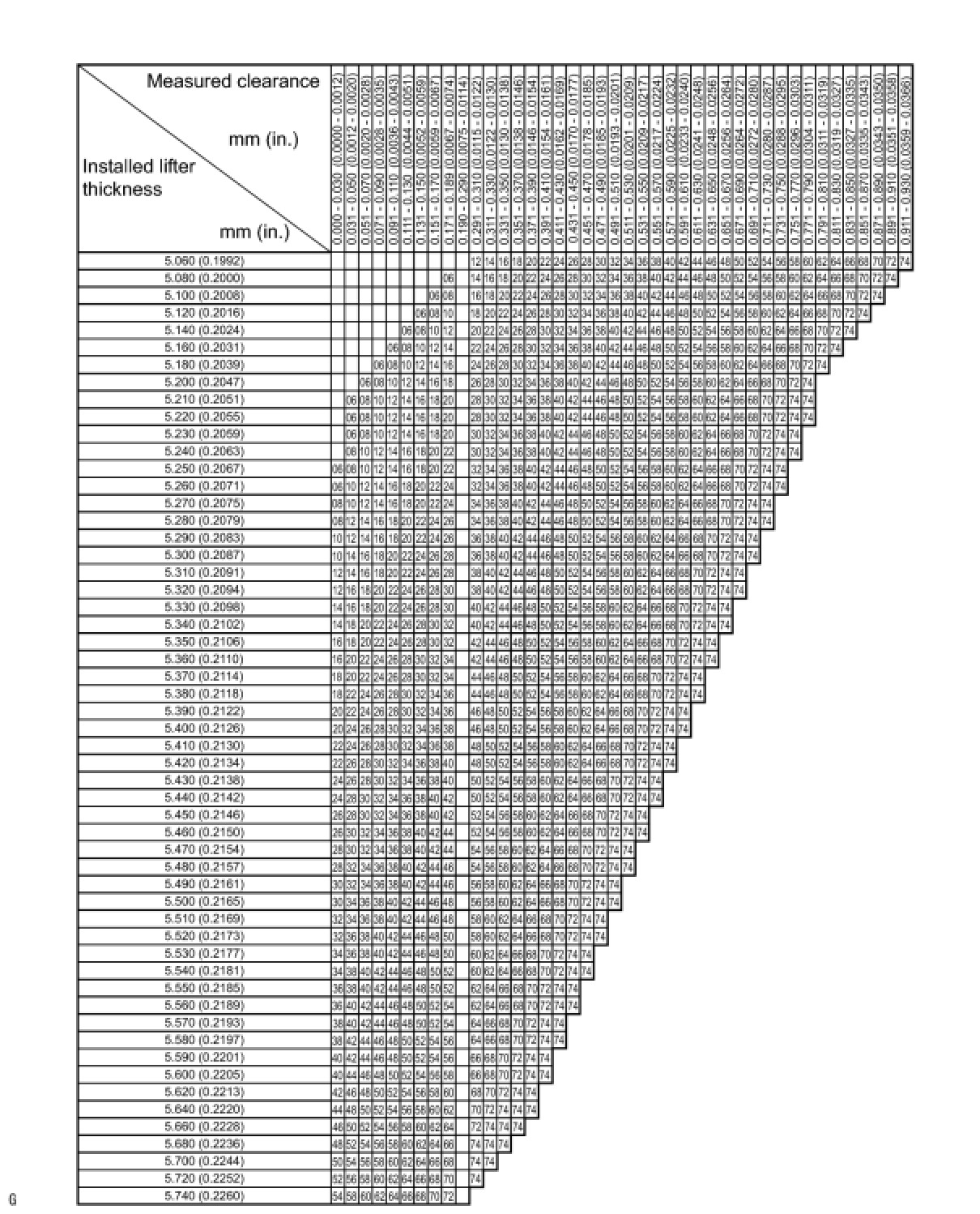 * Lifters are available in 35 sizes in increments of 0.020 mm (0.000787 in.), from 5.060 to 5.740 mm (0.1992 to 0.2260 in.).