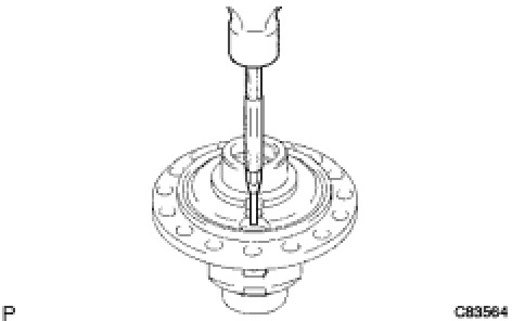 (a) Using SST and a hammer, unstake the staked part of the front differential case.