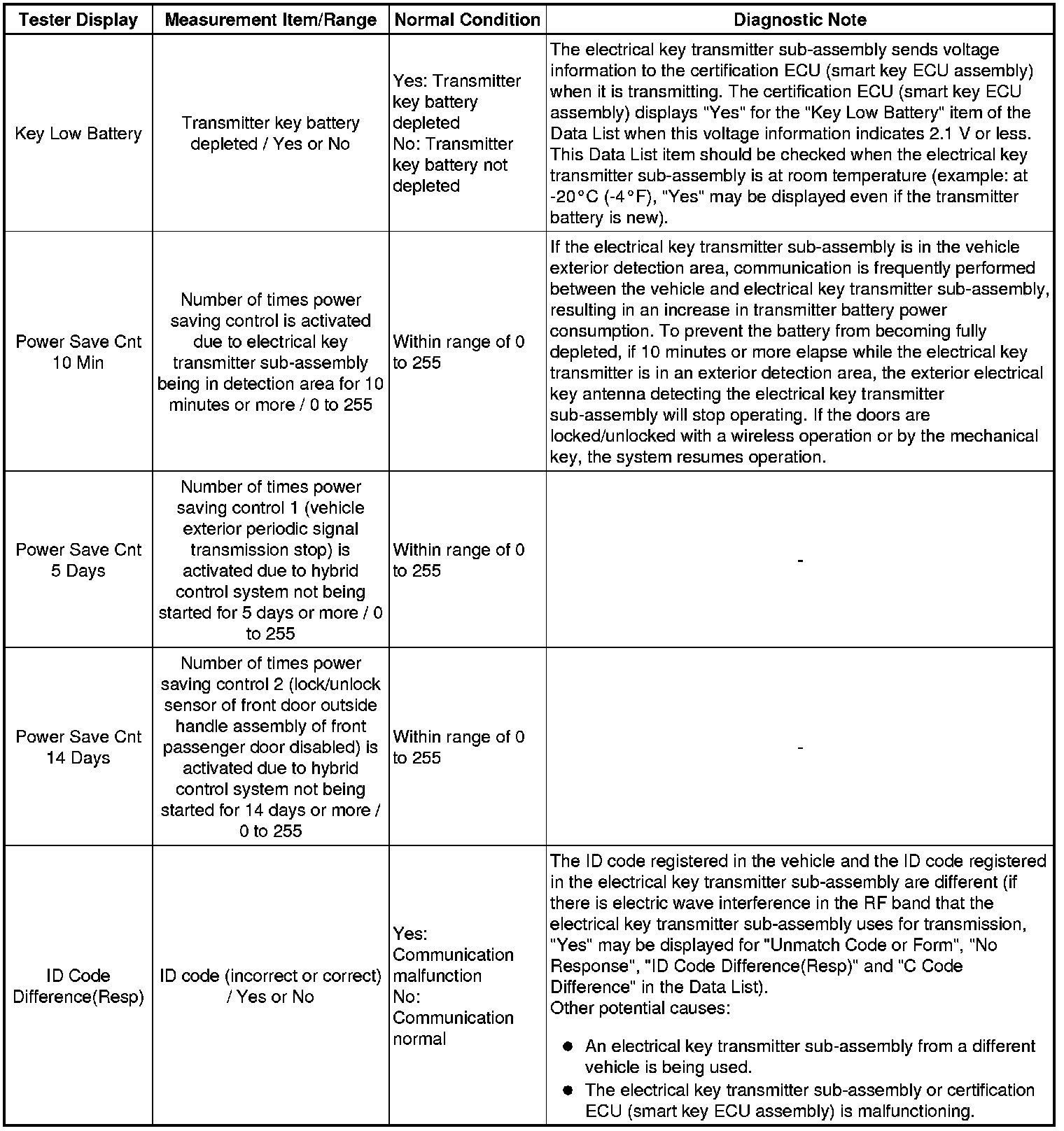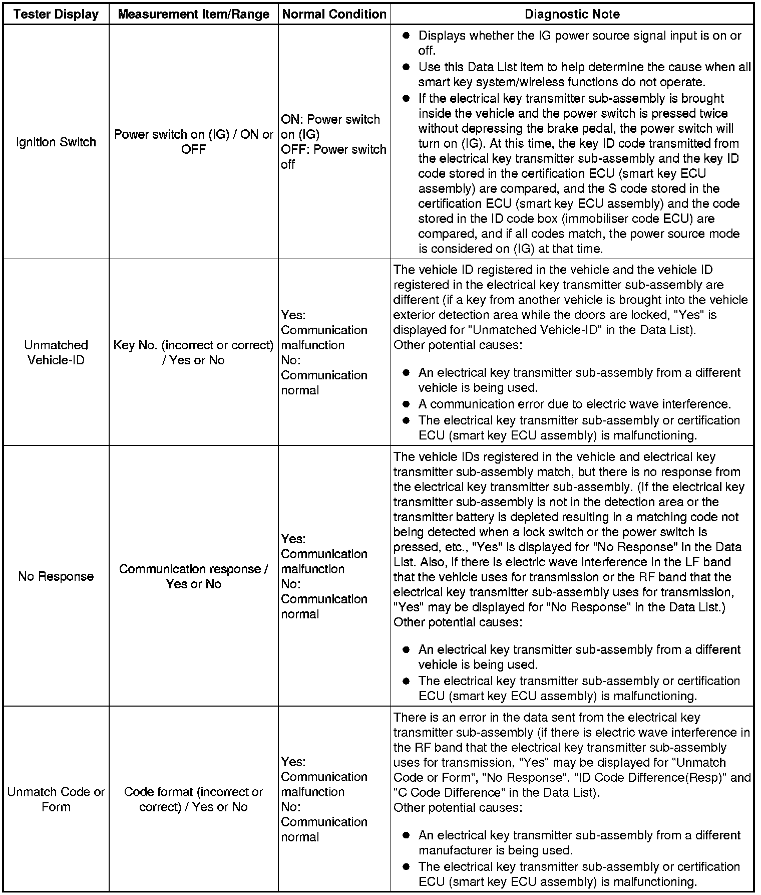 THEFT DETERRENT / KEYLESS ENTRY: SMART KEY SYSTEM (for Entry Function): DATA LIST / ACTIVE TEST