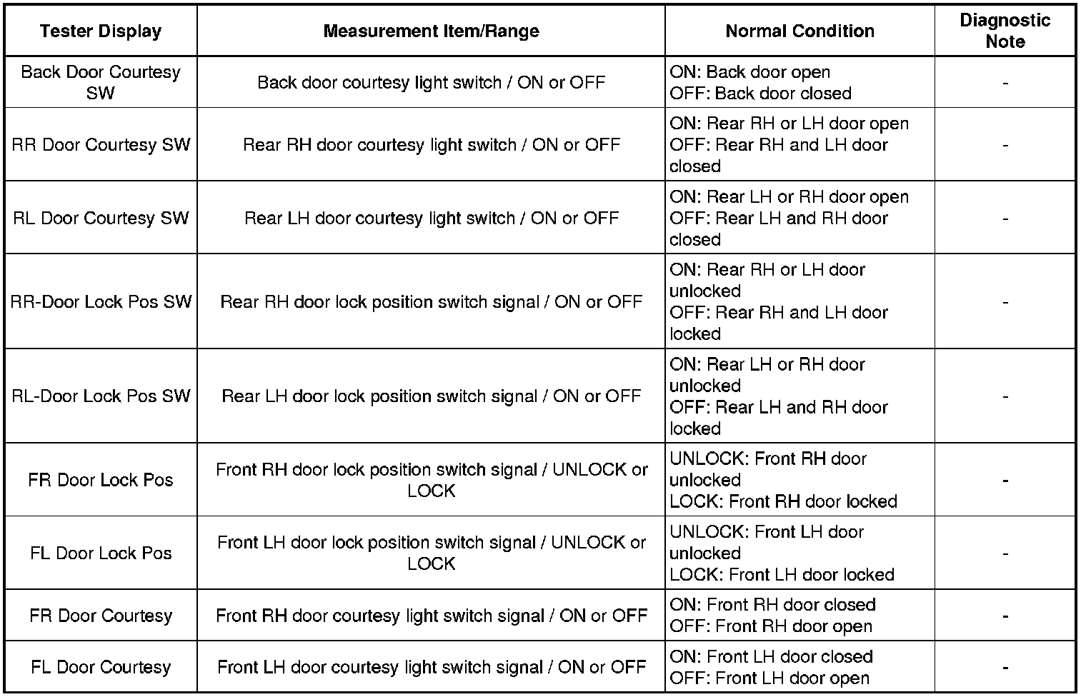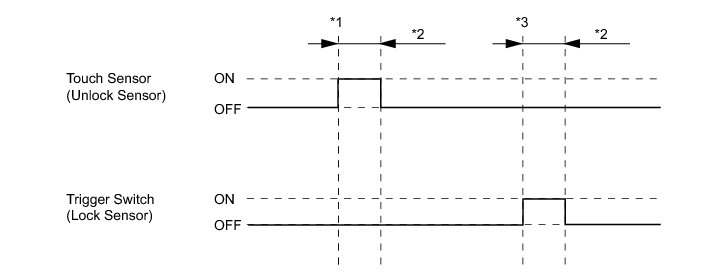 * *3: With power switch off, all doors closed, electrical key transmitter sub-assembly not inside vehicle and all doors unlocked, front door outside handle assembly (lock sensor) touched.