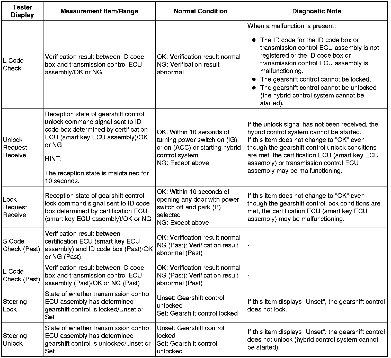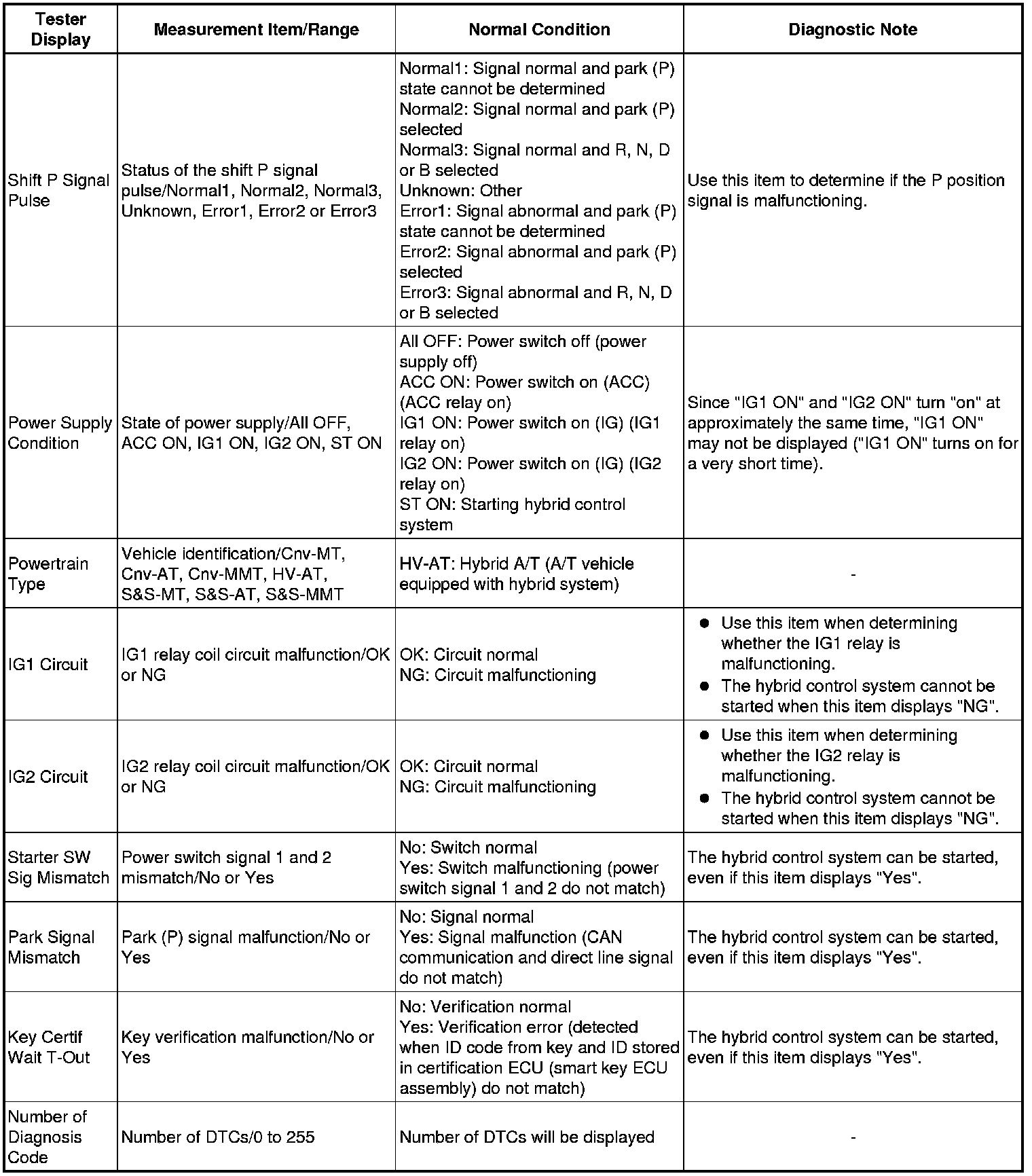 Using the Techstream to read the Data List allows the values or states of switches, sensors, actuators and other items to be read without removing any parts. This non-intrusive inspection can be very useful because intermittent conditions or signals may be discovered before parts or wiring is disturbed. Reading the Data List information early in troubleshooting is one way to save diagnostic time.