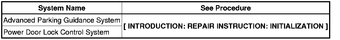 When disconnecting the cable from the negative (-) auxiliary battery terminal, initialize the following systems after the cable is reconnected.