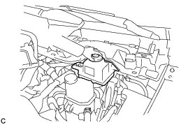 * As brake fluid may overflow when replacing brake fluid, do not place the fluid can on the reservoir filler opening.