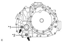 (d) Using a 10 mm hexagon socket wrench, temporarily install the drain plug and gasket. [*4]
