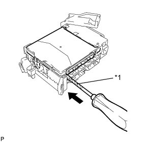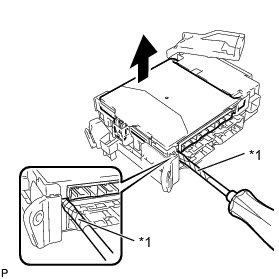 (c) Using the screwdriver, carefully raise the main body ECU (multiplex network body ECU) up to the position where the connector becomes disengaged.