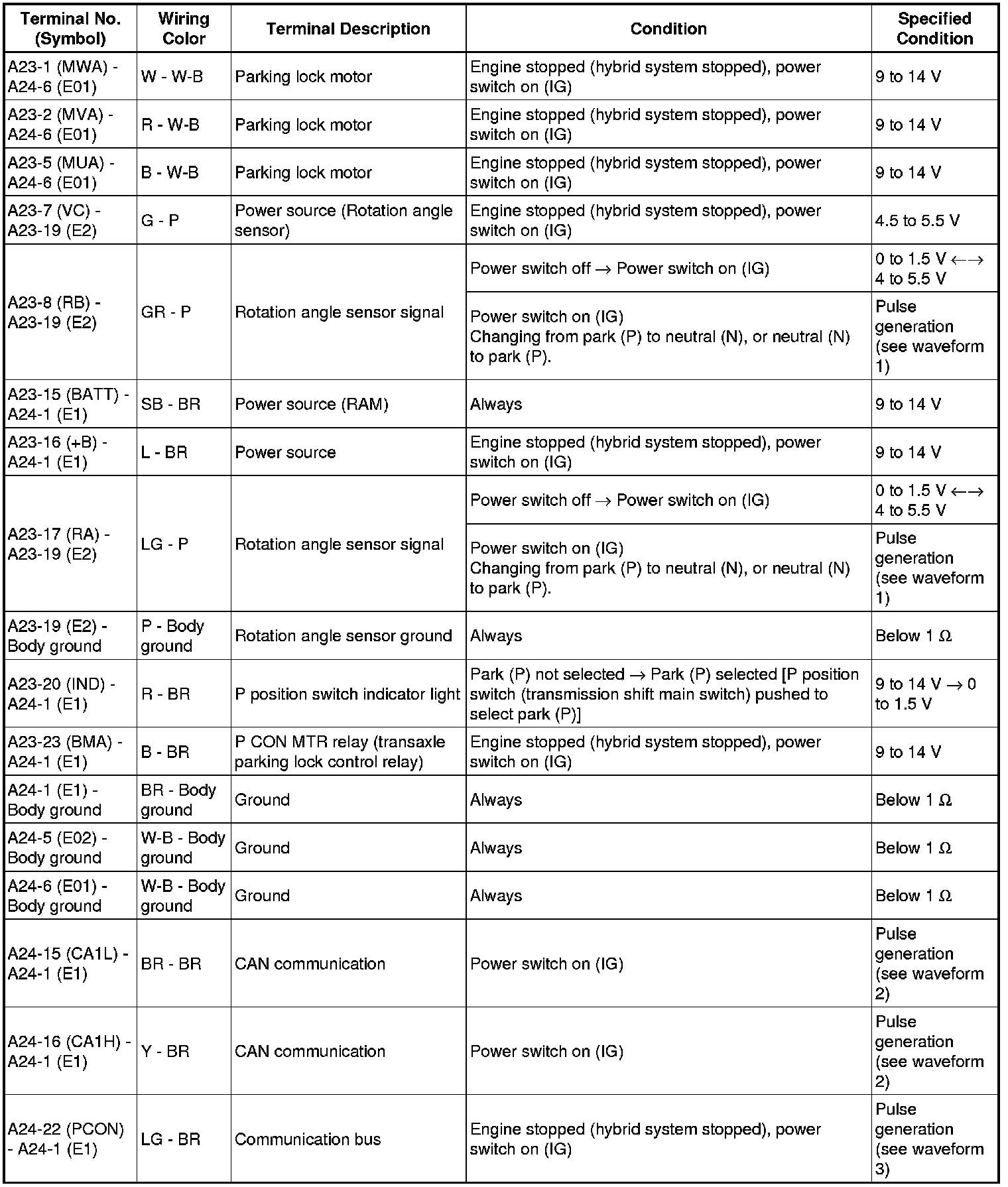 P410 HYBRID TRANSMISSION / TRANSAXLE: ELECTRONIC SHIFT LEVER SYSTEM: TERMINALS OF ECU