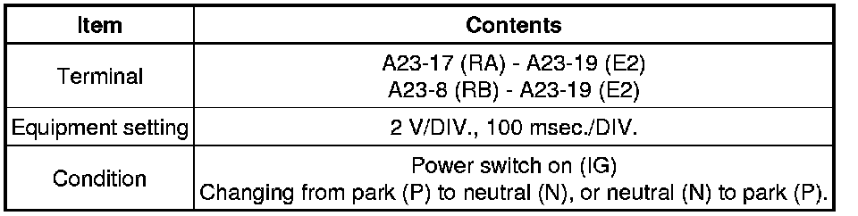 * When changing from park (P) to neutral (N), or neutral (N) to park (P) with the power switch on (IG), a waveform will be generated for up to 0.5 seconds.
