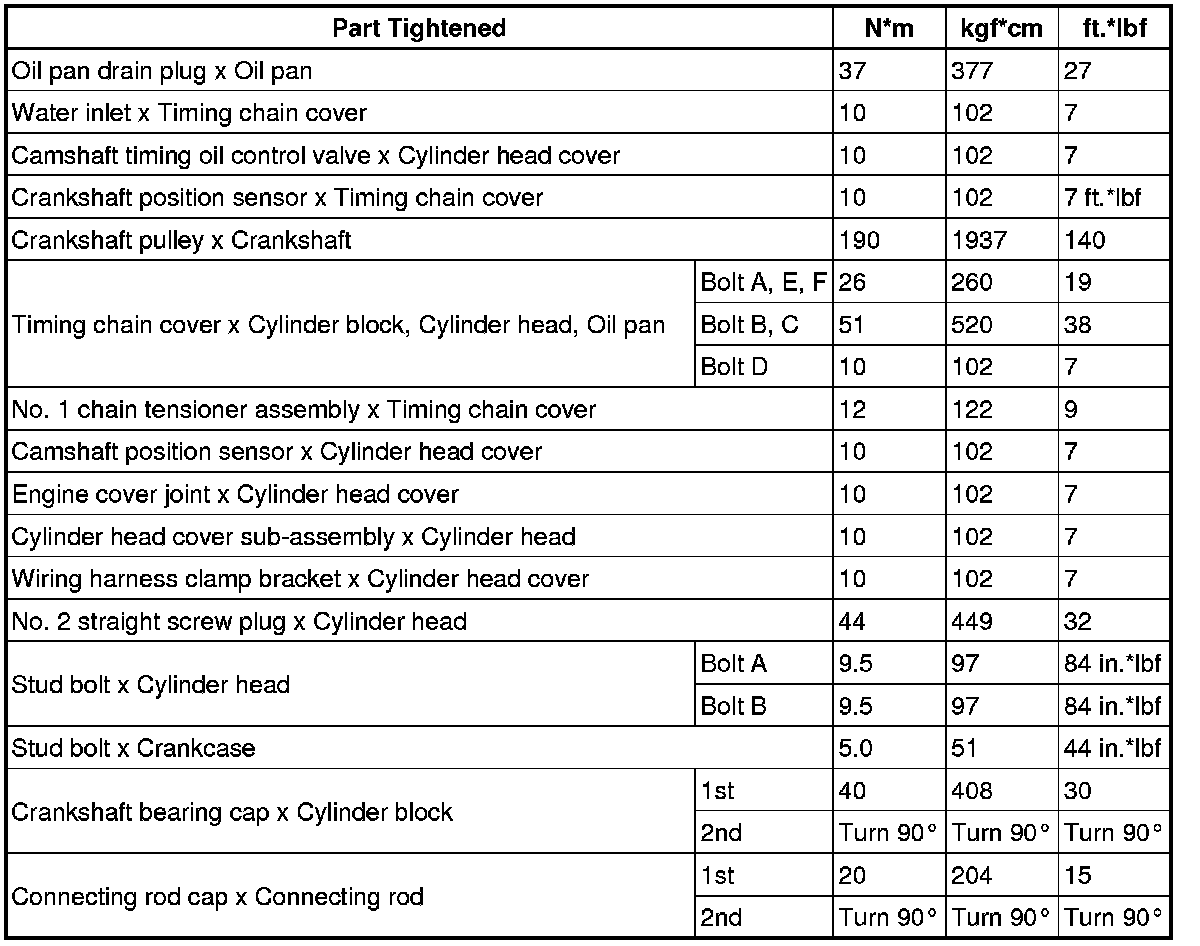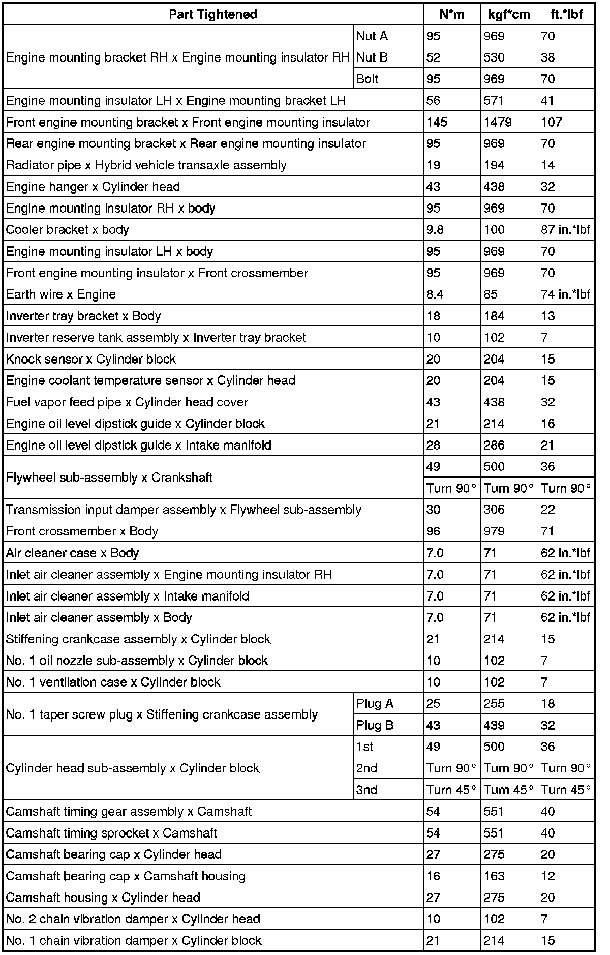 SPECIFICATIONS: 2ZR-FXE ENGINE MECHANICAL: TORQUE SPECIFICATIONS