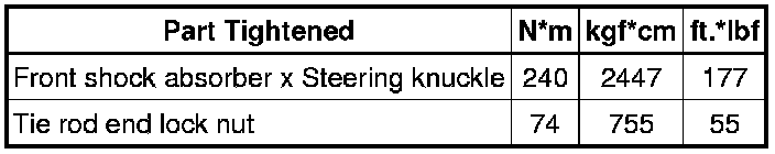 SPECIFICATIONS: ALIGNMENT / HANDLING DIAGNOSIS: TORQUE SPECIFICATIONS