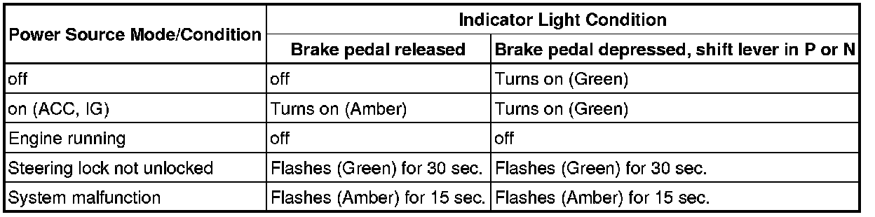 * The amber and green LEDs are for the indicator lights. The driver can check the present power source mode and whether the engine can start in accordance with the illumination state of the indicator light.