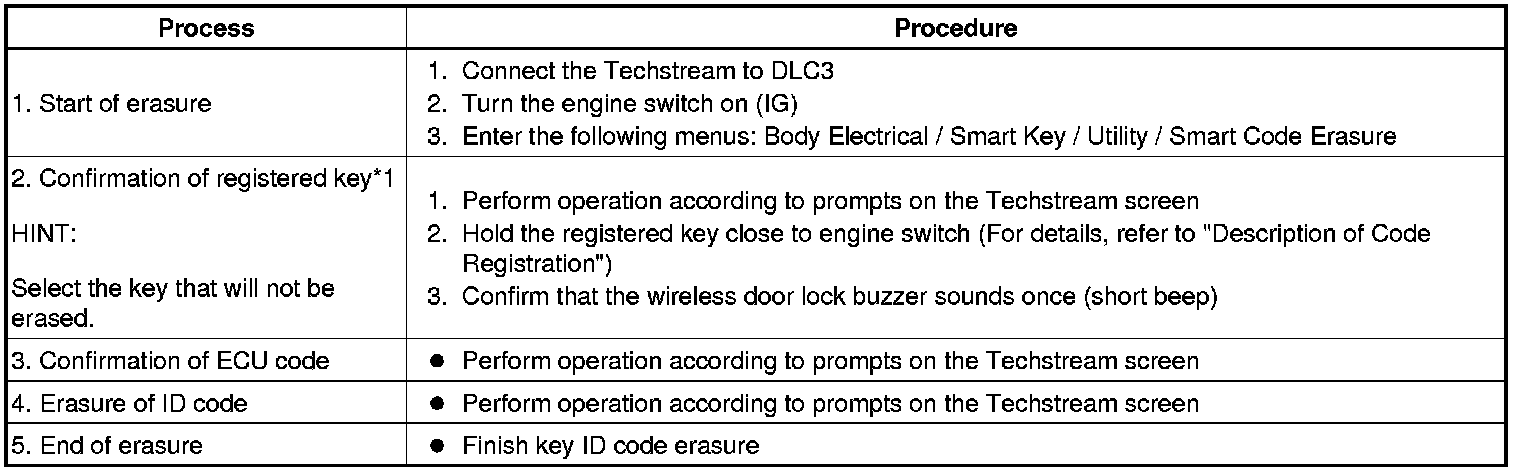 * *1: Perform this process for one of the keys registered for the vehicle. Finish the procedure within 30 seconds. If the procedure has not been finished within the specified time, perform the erasure procedures again from process 1.