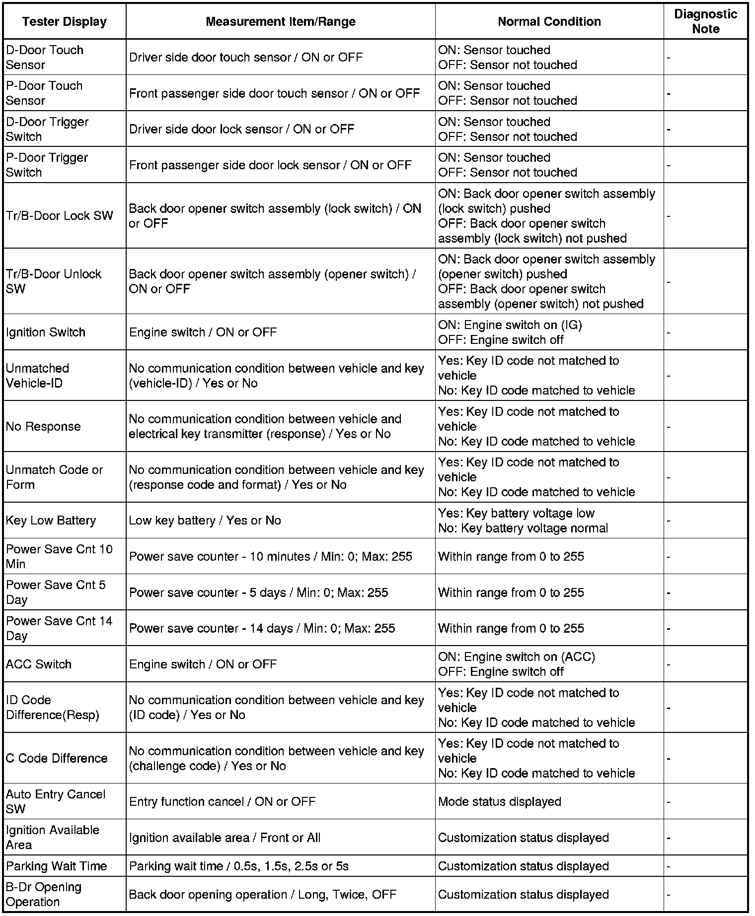 THEFT DETERRENT / KEYLESS ENTRY: SMART KEY SYSTEM (for Entry Function): DATA LIST / ACTIVE TEST