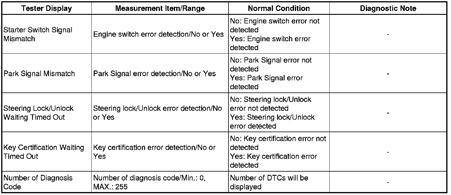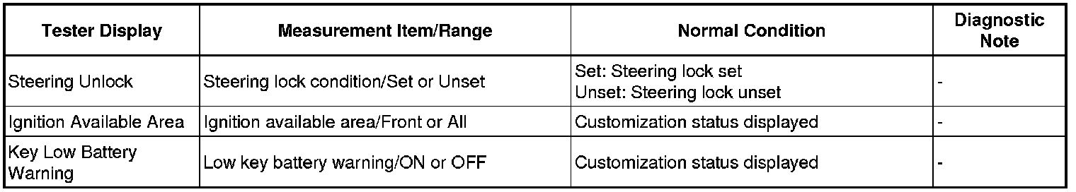THEFT DETERRENT / KEYLESS ENTRY: SMART KEY SYSTEM (for Start Function): DATA LIST / ACTIVE TEST