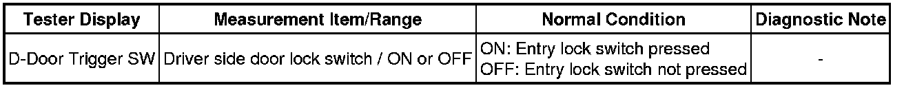 - Driver Side Door Entry Lock Function does not Operate