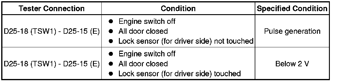 (a) When the door control switch on the master switch assembly is operated, check that the doors unlock and lock according to switch operation Operation Check.