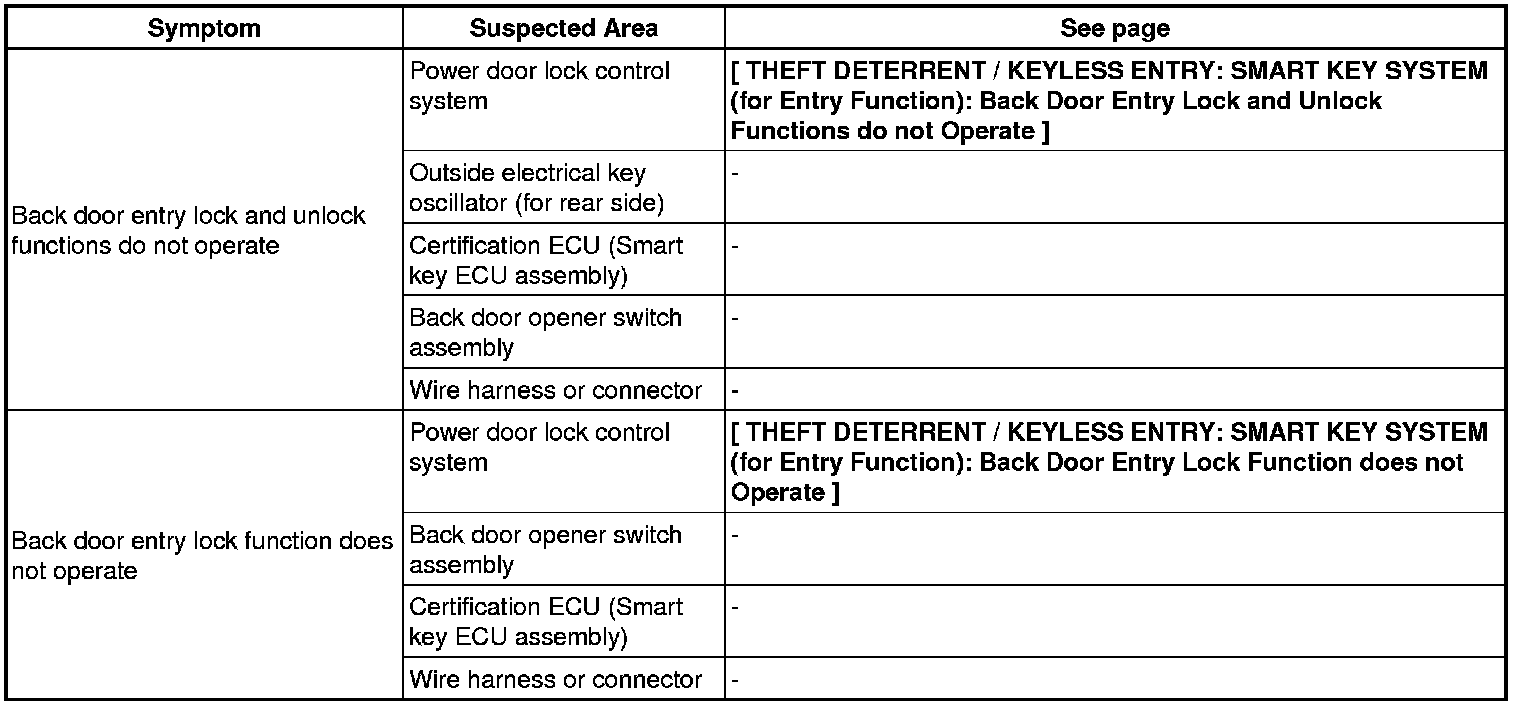 THEFT DETERRENT / KEYLESS ENTRY: SMART KEY SYSTEM (for Entry Function): PROBLEM SYMPTOMS TABLE