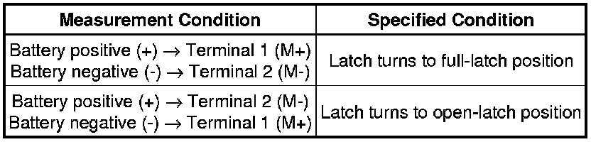 (1) Apply the battery voltage to the door lock motor and check the operation of the door lock motor.