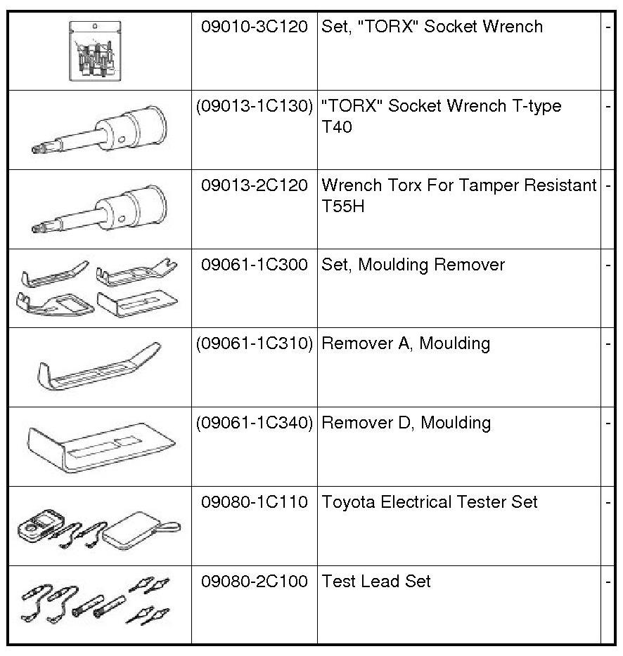 PREPARATION: SEAT: RECOMMENDED TOOLS